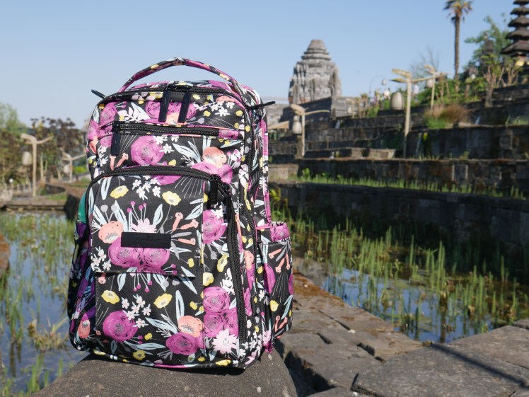 Pourquoi un JUJUBE? J’ai été immédiatement séduite par le style, par leurs multiples motifs et surtout, je suis totalement fan du mode cartable à langer! Il existe très peu de sac avec des bretelles sur le marché. JUJUBE a eu une très bonne idée selon moi car c’est vraiment TRES pratique de porter le nécessaire de bébé dans le dos. Cela permet d’avoir les mains libres et c’est beaucoup plus agréable et fonctionnel qu’un sac en bandoulière, surtout quand on doit énormément bouger et que l’on a des projets de voyage comme nous. Pour information, mon ancien modèle est un B.F.F (Best Friend Forever). Voici mon ancien sac JUJUBE.