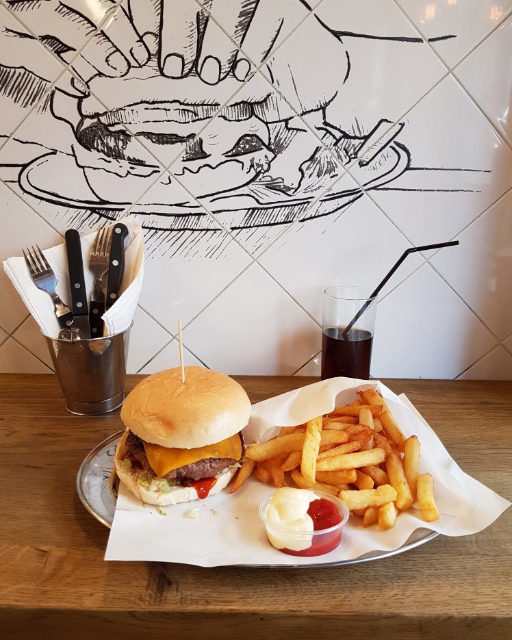 Au bout d’un moment, mes neurones se reconnectent, je comprends d’un seul coup pourquoi je me suis sentie « vidée », « affamée », « complètement mal » en arrivant à Amsterdam. J’avais tellement faim! Il était midi quand nous sommes arrivées mais quand même, c’est pas mon genre d’être si mal à cause d’un ventre vide. Je me souviens, on avait choisi le premier endroit pour se poser. Mais vraiment LE PREMIER! Un truc pas du tout healthy alors que j’étais dans ma période bouffe saine à fond! Je me sentais tellement en crise d’hypoglycémie que j’aurai pu « bouffer » un éléphant! Désolée pour le langage, je m’emballe!