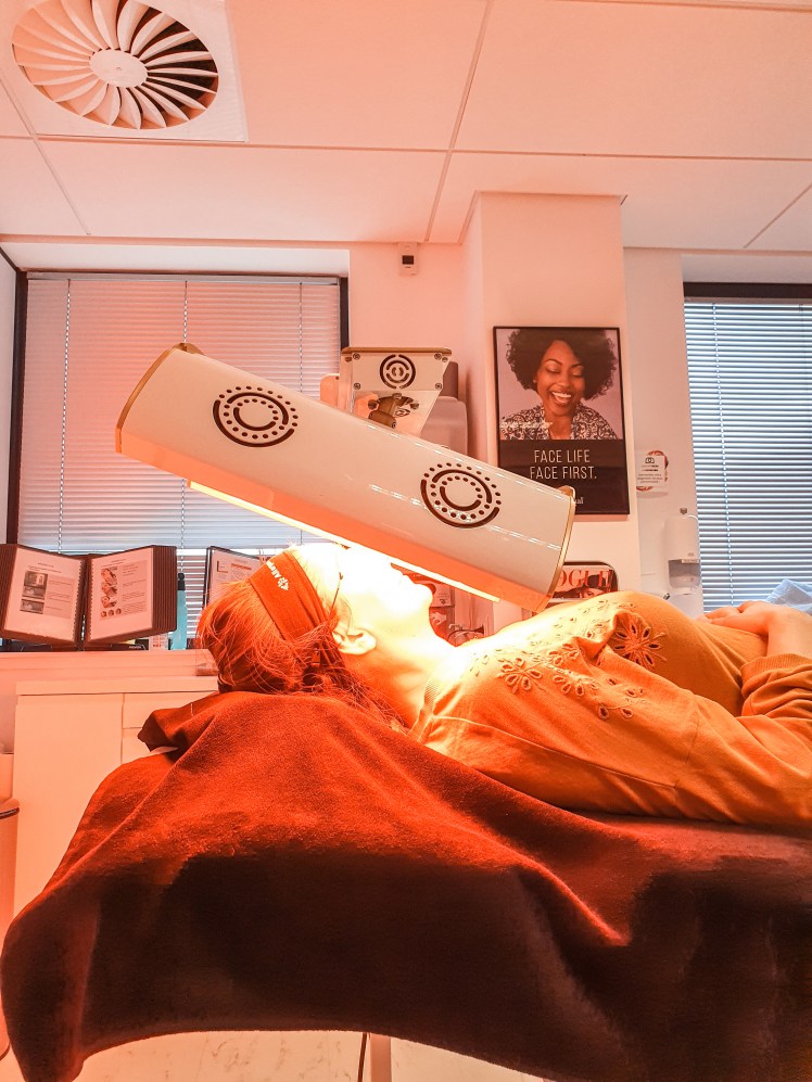 Pour limiter l’effet inflammatoire et diminuer l’ÉVICTION sociale le médecin m’a proposé de passer sous une lampe afin d’aider à la cicatrisation 👍 (soin supplémentaire non compris dans le peeling mais qui ne coûte pas très cher en supplément).